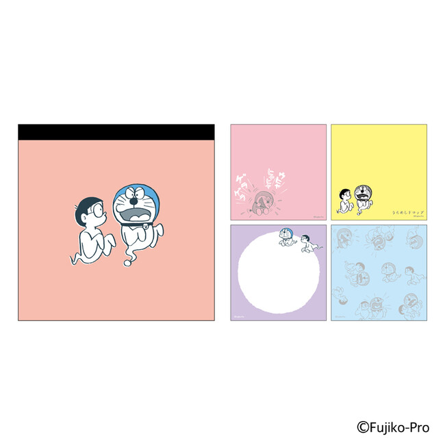 使いやすいサイズで持ち運びに適したスクエアメモパッドです。メモの絵柄は4種類で、色々な表情の「ドラえもん」と「のび太」を楽しむことができます。