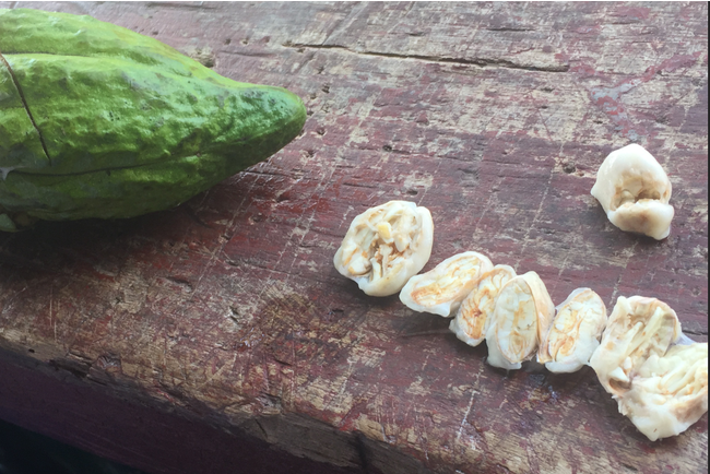 通常のカカオ豆は中身は紫色ですが、豆の中身が白色のカカオ豆があり、それをホワイトカカオと呼びます。流通量が少ないことから”幻のカカオ”とも呼ばれています。
