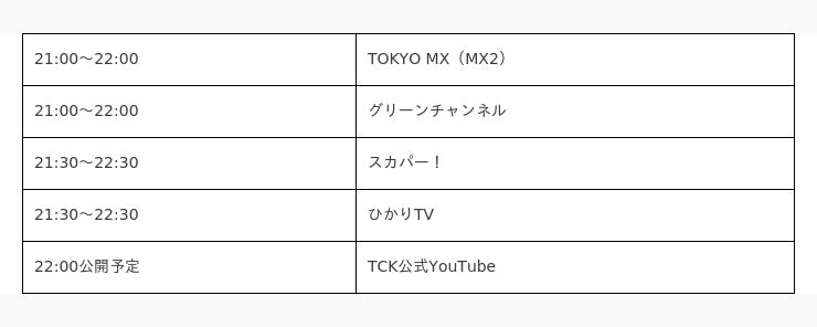 <放送時間及び放送局>