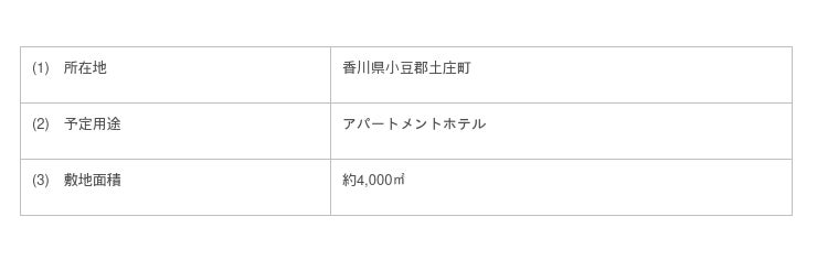 【香川県小豆郡土庄町】アパートメントホテル開発用地の取得に関するお知らせ