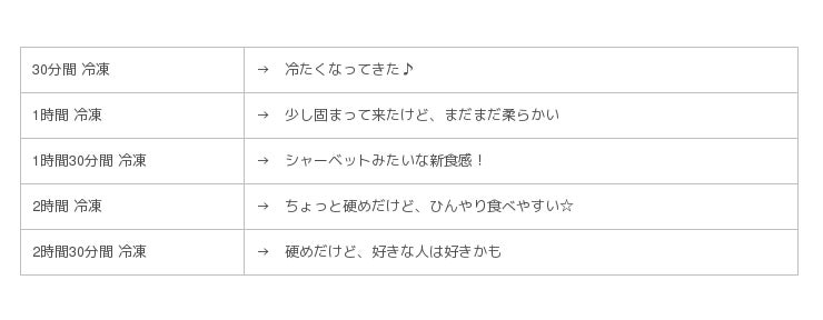 ※冷凍庫によって、ちょうどいい冷凍時間は異なる場合があります。