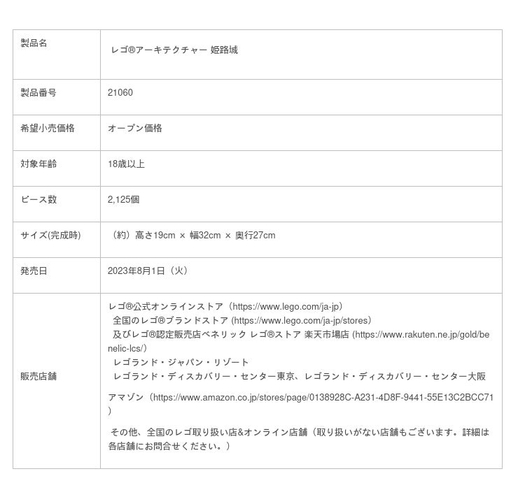 レゴジャパン株式会社(代表取締役社長:マイケル・エベスン/所在地:東京都港区、以下レゴジャパン)は、“日本”をフィーチャーした大人向けレゴ(R)セット「レゴ(R)アーキテクチャー 姫路城」「レゴ(R)アイコン 禅ガーデン」を2023年8月1日(火)より販売開始します。