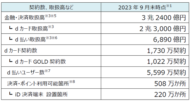 「dポイント」 「d払い」 「iD」 「dカード」 の事業データ