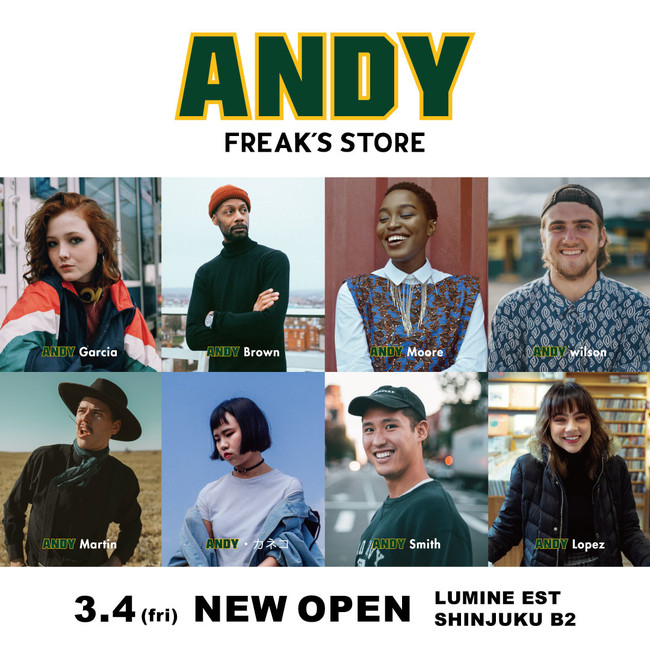 FREAK'S STOREから新たなコンセプトストア「ANDY FREAK'S STORE」が3月4日(金)ルミネエスト新宿B2Fにオープン!