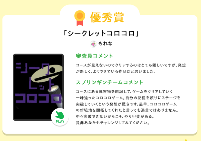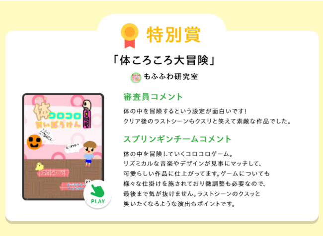 特設ページURL:https://www.springin.org/awards/korokorogame/