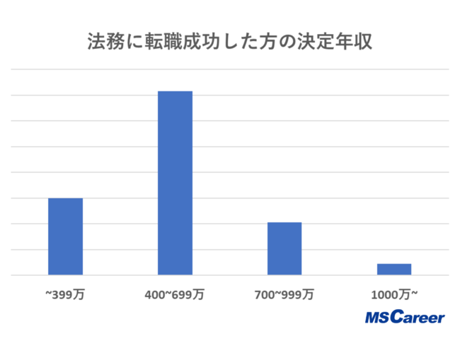 法務への転職が決定した方の決定年収は400〜699万円が最も多いという結果になりました。