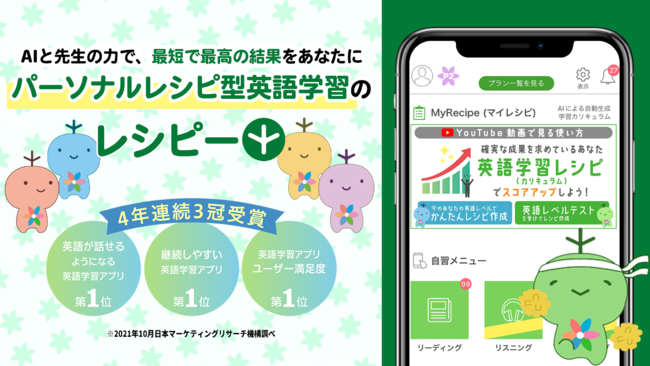 レシピーは、累計200万人が使う、ユーザ満足度No.1、成果No.1の英語学習アプリです。