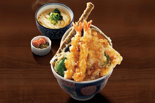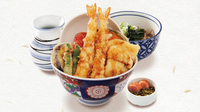 ちゃ」などをサクサク衣に閉じ込めた贅沢海老天丼。