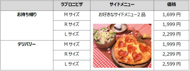 ラブロニピザ+お好きなサイドメニュー2品で1,699円からお召し上がりいただけます。