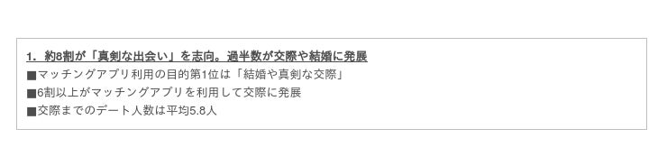 一方、マッチングアプリ利用者はお相手と会うまでに長い時間を費やしているのに、会って5分程度でミスマッチに気づく場合が多いことが今回実施した調査で分かりました。本調査ではマッチングアプリを利用してお相手と対面で会った経験のある20歳〜39歳の400名を対象に、マッチングアプリの利用実態を明らかにしました。