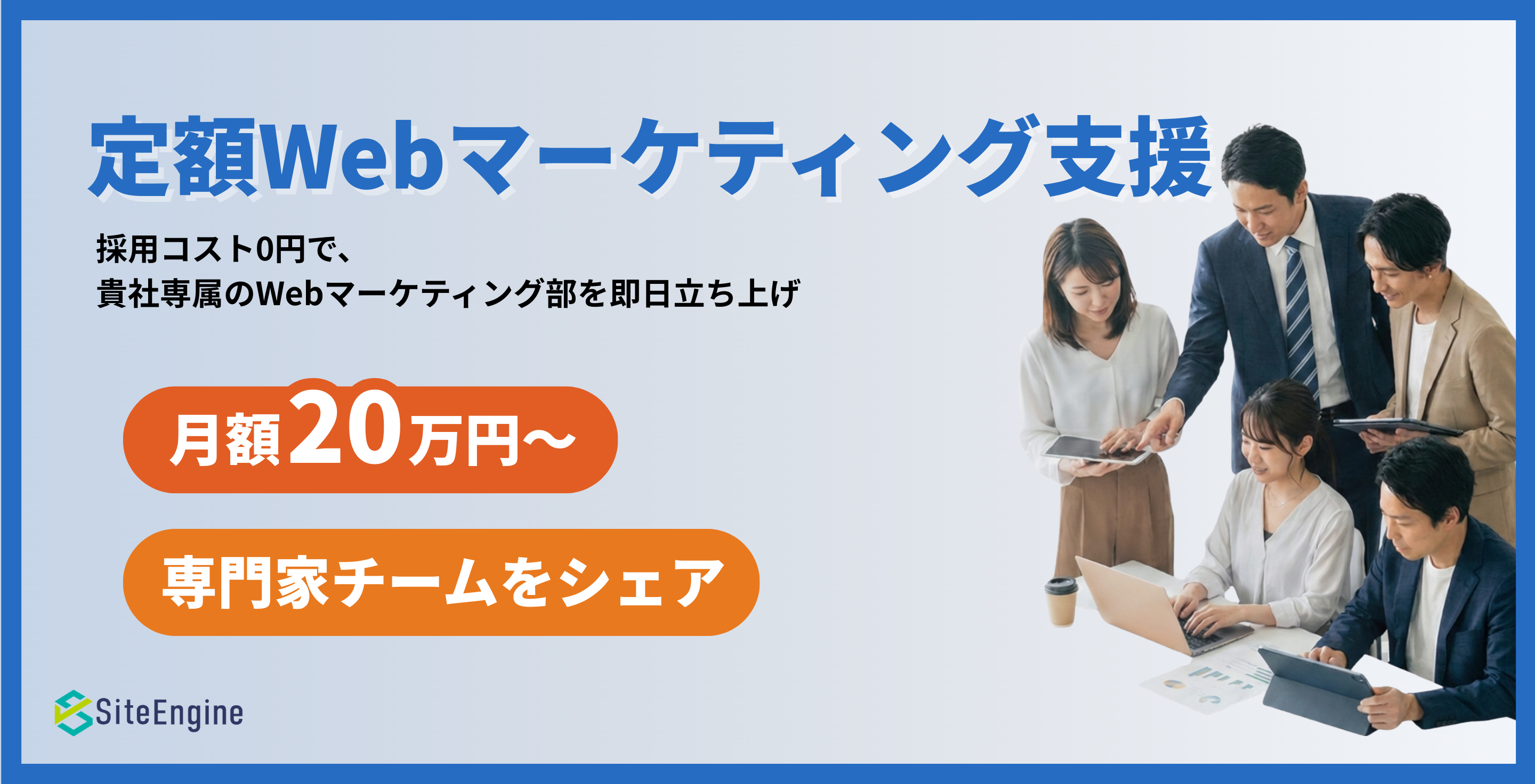 デジタルマーケティング支援事業を展開するサイトエンジン株式会社(本社:東京都世田谷区、代表取締役:毛塚智彦 以下、サイトエンジン)は、企業のWeb集客施策を定額でトータルサポートする新サービス「定額Webマーケティング支援」を2026年1月21日(水)より提供開始しました。月額20万円(税別)から、SEO・ランディングページ・ホワイトペーパーなど複数施策を専門家チームに一括で依頼でき、採用費・教育コストをかけずに即戦力を確保できます。