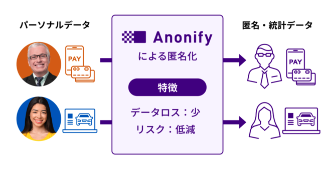 Anonify*1:Anonifyは、世界中で進む先端的なプライバシー分野の学術研究を土台に、実務的なデータ利活用に応用できるようLayerXが独自に開発した様々なアルゴリズムから成るプライバシー保護技術です。