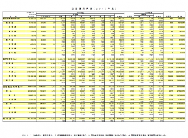 インドネシア・エアアジアX/デンパサール線(5月25日)の新規乗り入れや日本航空/ホノルル線(4月1日、4月26日)の増便に加えて、ソウル線におけるチェジュ航空(4月1日)、ティーウェイ航空(4月29日)、イースター航空(5月8日)の増便などにより、韓国線を中心として好調だったことから、前年同月比2%増の16,611回と5月として過去最高となりました。