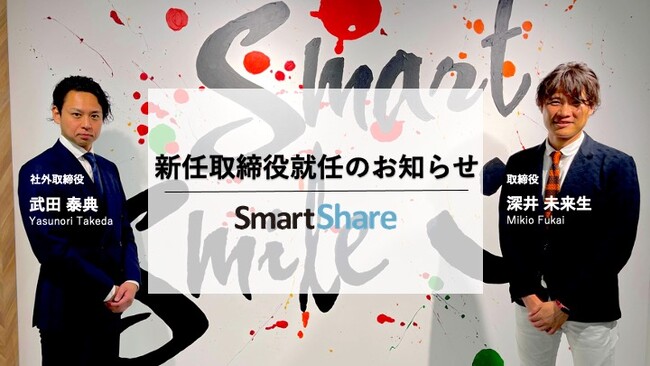 SNSマーケティングプラットフォーム「OWNLY」(オウンリー)を開発・運営するスマートシェア株式会社(東京都渋谷区、代表取締役 西山統、以下「当社」)は、2023年5月1日付けにて武田泰典が社外取締役に、2023年6月1日付け(予定)にて深井未来生が取締役に就任することをお知らせします。
