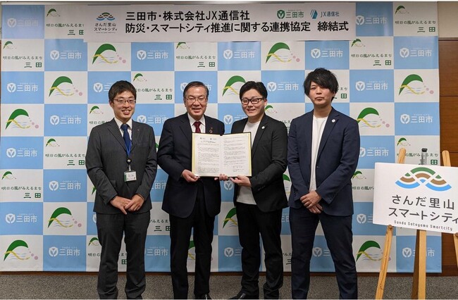 株式会社JX通信社(東京都千代田区 代表取締役 米重克洋、以下 当社)は、兵庫県三田市(市長:森 哲男)と、三田市の防災・スマートシティ推進を目的とした協定締結式を執り行いました。