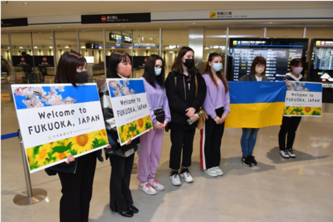本学は岸田文雄首相のウクライナからの避難民の積極的な受け入れ表明に呼応し、教育分野でその一躍を担うべく、2020年より提携を結んでいるキエフ国立言語大学で日本語を学ぶ学生を72人を受け入れることになり、避難民学生は昨日までに、計48人が福岡に到着しています。