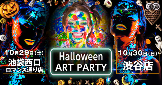 企画名:ハロウィンアートパーティー 対象期間:2022年10月29日(土)、10月30日(日) 対象時間:19:00〜22:00 対象店舗:パブスタ池袋西口ロマンス通り店、渋谷店