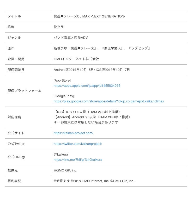 GMOインターネット株式会社は、スマホ用ゲームアプリ『快感♥フレーズ CLIMAX』において、年越しの大型ガチャ、そして令和最初のお正月のイベントとガチャとして以下を開催いたします。