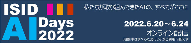ISIDは、2022年6月20日(月)から24日(金)の5日間、オンラインイベント「ISID AI Days 2022」を開催します。