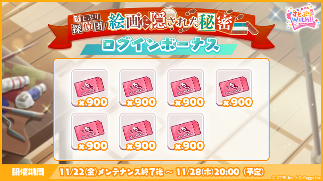 本日11月22日(金)より、「すとぷり探偵団!絵画に隠された秘密 応援イベント ログインボーナス」を実施中です。