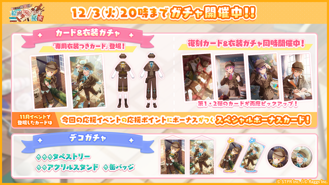 本日11月22日(金)より、「すとぷり探偵団!絵画に隠された秘密 第1弾カード&衣装ガチャ」「すとぷり探偵団!絵画に隠された秘密 第2弾 カード&衣装ガチャ」で登場したカードが再度ピックアップ登場する「すとぷり探偵団!絵画に隠された秘密 復刻 カード&衣装ガチャ」が開催中です。