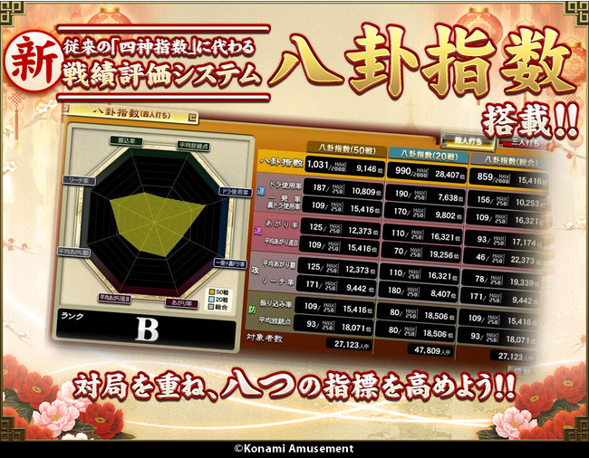 さらに、「八卦指数」を基準とした新たなランキングシステムを搭載。プレーヤーそれぞれの長所を伸ばすことで上位を目指せるシステムとなっており、上達にも役立ちます。