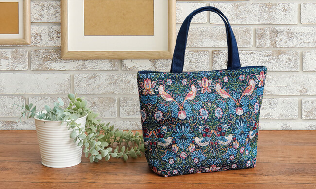 ウィリアム・モリスの「いちご泥棒」が高級感のある華やかなジャガード織りの手提げバッグ