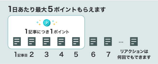 1日あたり5記事目までは「リアクションポイント」として、1記事につき1ポイントもらえます。