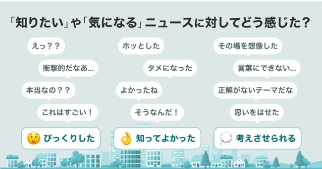 尚、リアクションには「びっくりした」「知って良かった」「考えさせられる」の3種類を設定しております。