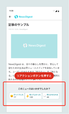 ニュースアプリ初!NewsDigest、ニュース記事へのリアクションでポイントが貯まる!「記事リアクション機能」を公開