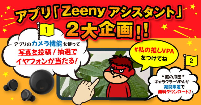 バーチャルパーソナルアシスタント(VPA)アプリ「Zeeny アシスタント」より、2大企画実施のお知らせです。