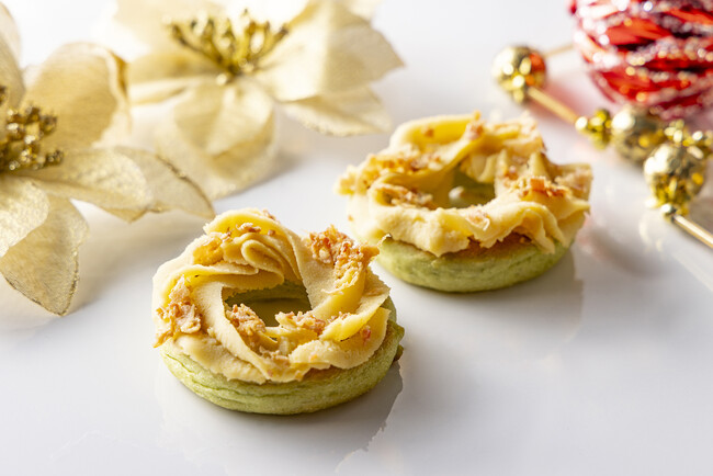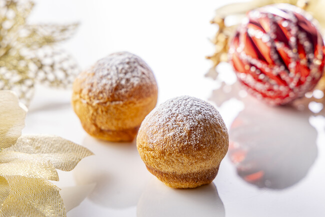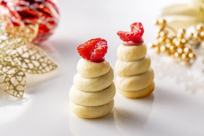 その他にも‘ヴァローナ’のフルーツクーベルフランボワーズのガナッシュを優しい味わいのコロネの中にたっぷり絞った『リトルツリー』、マンダリンオレンジのコンフィとジュースで作るゼリーを冠したデニッシュ『ゴールド・オーナメント』など、クリスマスらしい洗練されたスイーツブレッドをご用意しています。