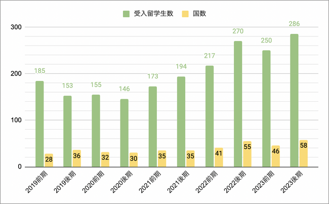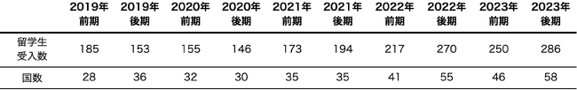 ※2020年前期から2021年後期までは、COVID-19による入国制限で、オンラインによる留学や、すでに国内に居住していた留学生のみ受入を行っていました。