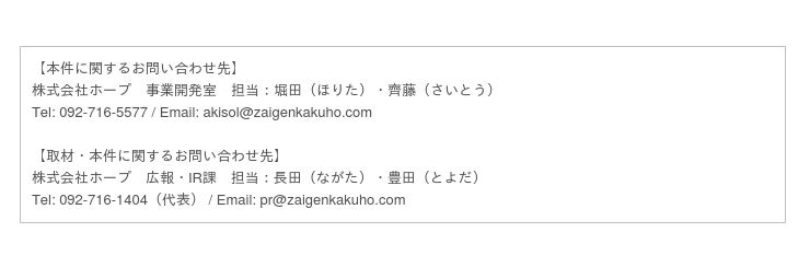 自治体に特化したサービスを展開する株式会社ホープ(本社:福岡県福岡市、代表取締役社長兼CEO:時津孝康、証券コード:6195、以下「当社」)は、空き家問題を解決する総合プラットフォーム「akisol」の試験運用を開始したことを、お知らせいたします。具体的には現時点で5自治体と本サービスに関する官民連携の試験運用を開始しています。