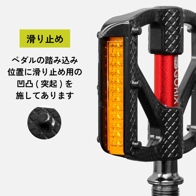 ペダルの踏み込み位置に滑り止め用の凹凸(突起)を施してあります。