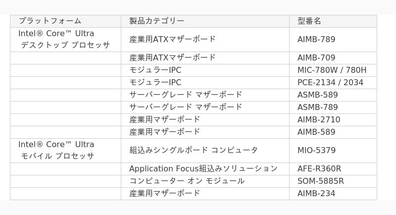 ■Intel(R) Core(TM) Ultraプロセッサ(シリーズ2)Sシリーズに対応した産業用マザーボード 〜 Mini-ITX規格「AIMB-2710」とMicro-ATX規格「AIMB-589」が登場 〜