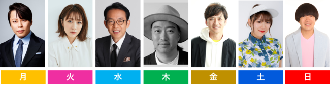 月曜から日曜まで豪華な出演者が勢揃い!曜日替わりで個性あふれる番組をお届けします。