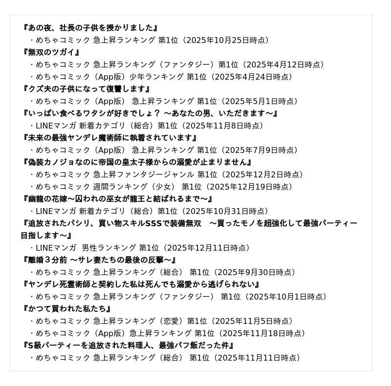 ▼ランキング1位を獲得した新作マンガ