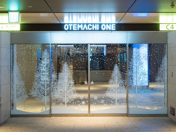 地下通路からOtemachi One Avenueへのエントランスには、雪が舞う白銀の世界をモチーフにデザイン。館内への期待感を高めます。