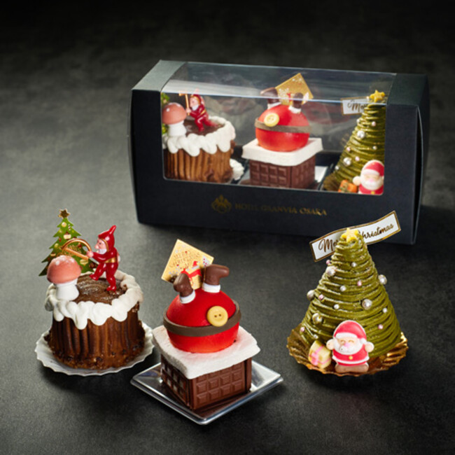 パティシエの想いがつまった3種類のプチケーキは、多くの人に幸せを届けようと大忙しのサンタクロースを3つのストーリーで表現しています。