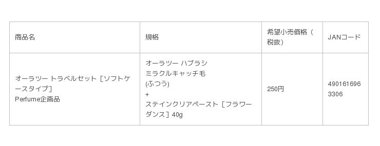 また、7月10日(月)より、オーラルケアグッズの持ち歩きにぴったりな、Perfumeプロデュースによる「Ora2×Perfume くちもとBeautyポーチセット」のプレゼントキャンペーンも実施いたします。