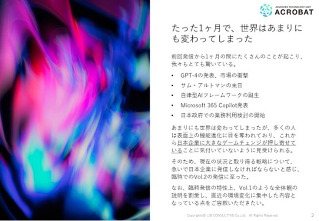 リブ・コンサルティング、「生成AIのビジネスインパクト Vol.2」ホワイトペーパーを提供