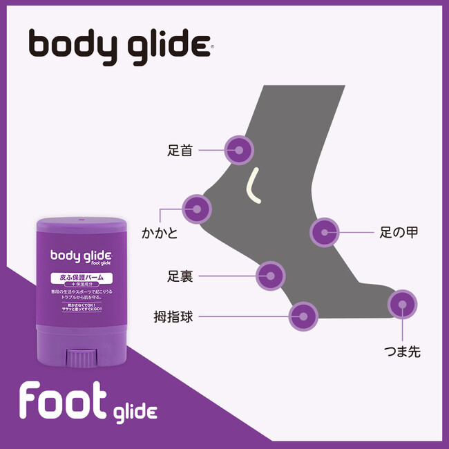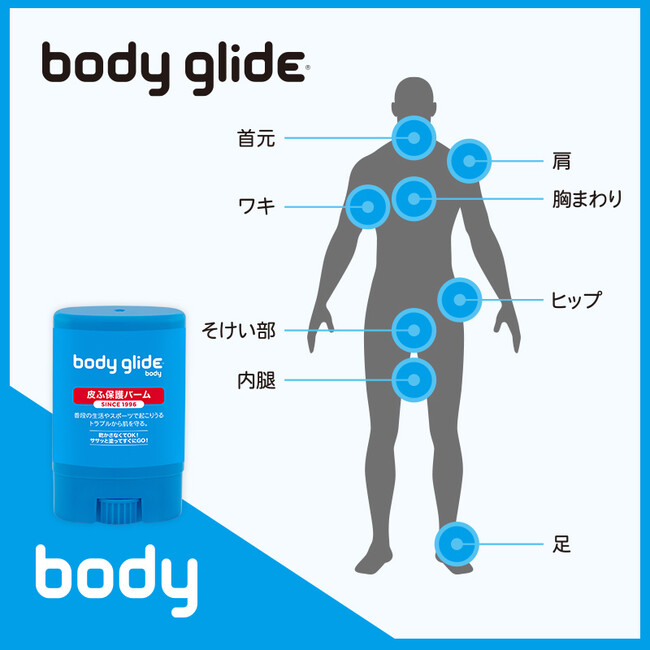 手を汚さずに直塗りできるスティックタイプの皮ふ保護バーム・Body Glide(R)(ボディーグライド)が日本初上陸!全米シェアNo.1を誇り、多くのスポーツ愛好家に支持されているブランド。スポーツやアクティビティの前にさっと塗るだけで、見えないバリアが形成されトラブルから未然に肌を守ります。水や汗にも強く、汗を逃して肌を呼吸させることで毛穴を清潔に保ち、様々なスポーツで想定される厳しい環境下でも快適で効果的なつけ心地を維持します。1996年からアメリカで愛され続けているバームが、いよいよ日本でも展開を開始。「大阪マラソンEXPO2023」「東京マラソンEXPO2023」のブースにて、先行ローンチとなります。