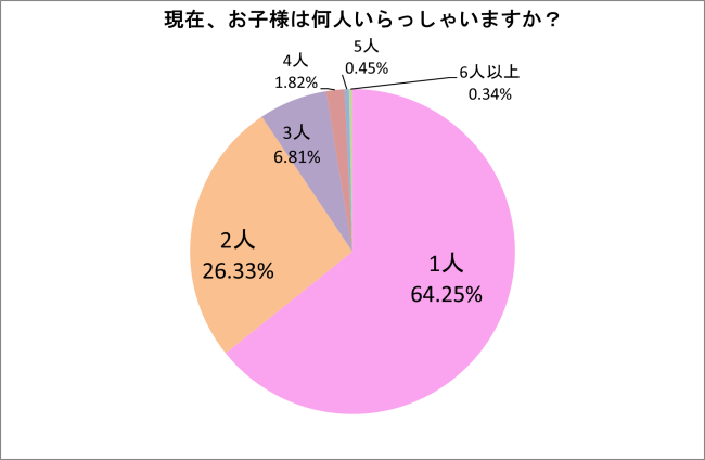 会員ママ881名を対象に現在の子どもの人数を尋ねたところ、「1人」(64.25%)「2人」(26.33%)という結果となり、アンケート回答者の約9割が「子どもは2人以下」ということがわかりました。