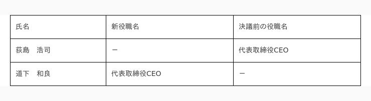 株式会社チームスピリット(東京都千代田区)は、2023年11月27日開催の第27期定時株主総会及び取締役会の決議に基づき、本日付で道下和良が代表取締役CEOに就任したことをお知らせいたします。なお、前代表取締役CEOの荻島浩司は同日付で退任となります。