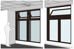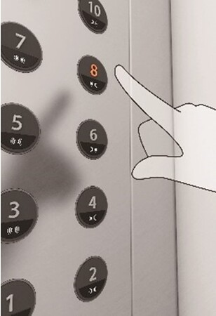 オフィスフロアの自然排煙窓は自由に開閉できないことが一般的ですが、本ビルでは電動機能を装備して気軽に開閉可能な仕様とし、環境要因による感染リスクを低減した計画としました。また、セキュリティと連動した自動閉め忘れ防止機能を設けました。エレベーターは、快適かつ簡単に操作可能な非接触ボタン式を採用しています。