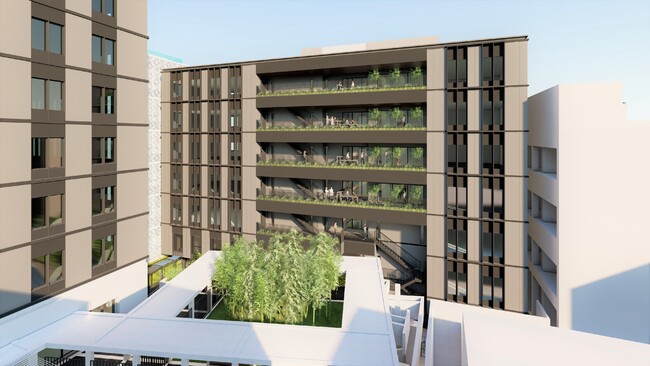 本ビルは、東京建物等が保有するオフィスビル「四条烏丸FTスクエア」の一部建て替え(増築)プロジェクトにより誕生した物件です。オフィスフロアと一体化した緑豊かなテラスを各階に設置し、感染症対策に配慮した電動開放窓の標準設置や非接触型のエレベーターを採用しております。