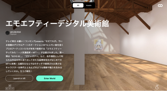 テレビ朝日新番組 お願い!ランキングpresents「そだてれび」で放送!「エモエフティーやってみた!」 漫画家・玉越博幸先生と共同でOpenSeaにてNFTのオークション販売を開始。