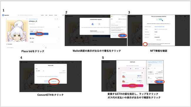 暗号資産を購入したことのない方でもオークションに参加できるようにメタマスクの開設方法・ETHからwETHへのスワップ方法を下記のURLにまとめています。