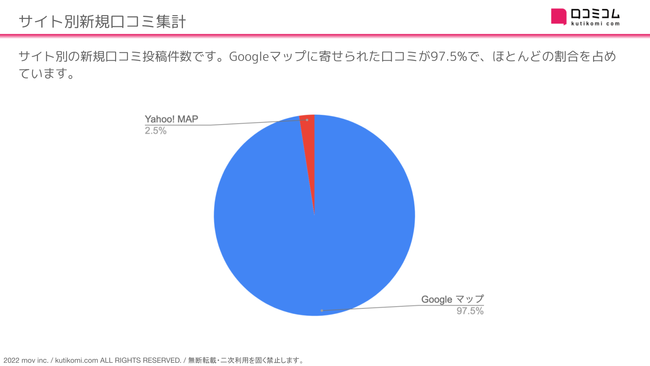 ・Googleマップに寄せられた口コミが97.5%で、ほとんどの割合を占めていること